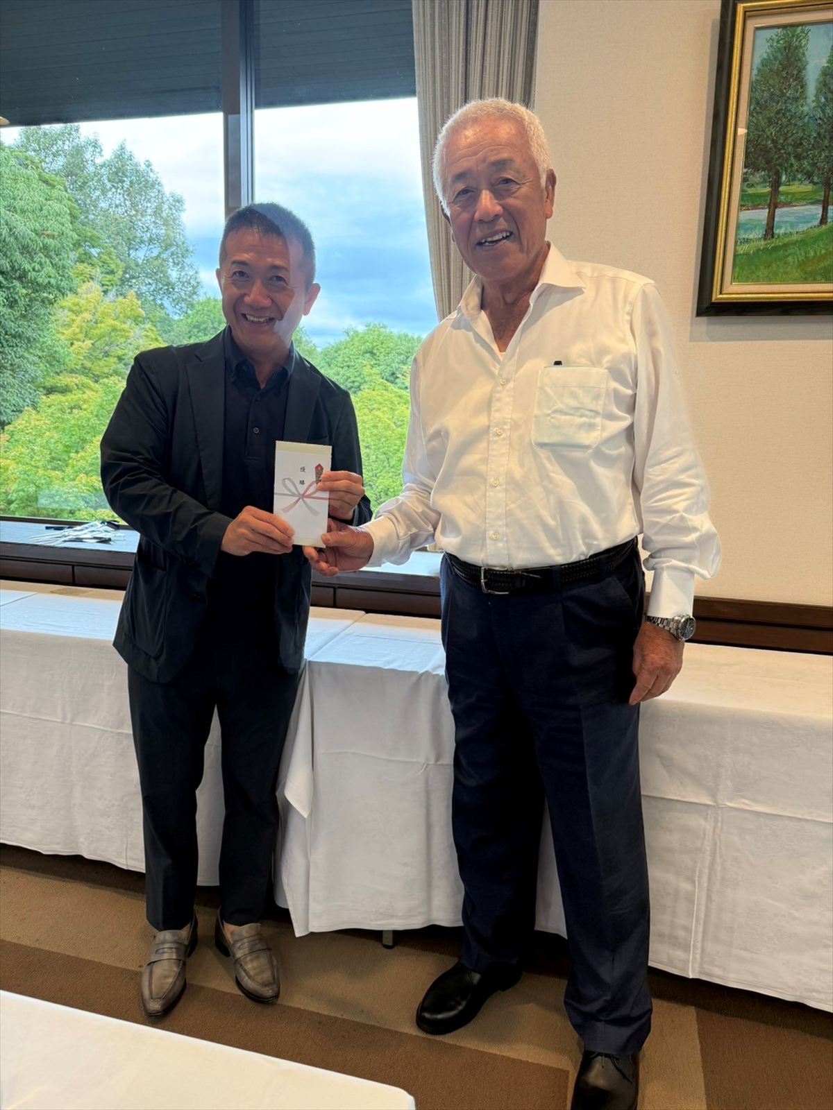 経済人クラブ秋のゴルフコンペが、9月11日に名門茨木カンツリー倶楽部西コースで開催されました。前日までの天気予報では、午前中は強い雨予報で中止もやむを得ない状況でしたが、ゴルフ場に到着した際には、すっかり雨も止んでいて問題なくプレーできました。